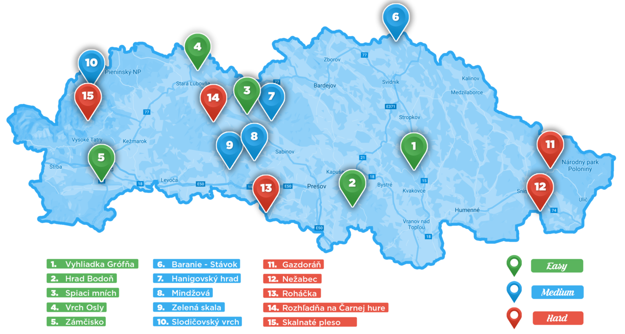 Zoznam všetkých 15 tich lokalít s presným popisom nájdeš v kategórii výlety. Postupne pribudnú aj 2 bonusové lokality.