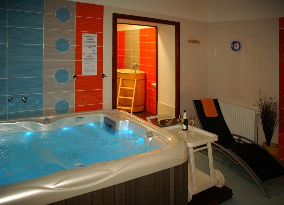Offer: jacuzzi, fínska/parná/aromatická sauna, studená vedrová sprcha a ľadopád. Klasická masáž a lymfodrenáž.