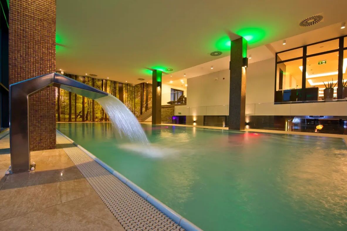 Offer: dry/steam/infra/salt sauna, swimming pool, relaxation room, cooling pool, jacuzzi, whirlpool, massage bed, experience showers. Solarium. Vip Ski Lounge (private area on the roof of the hotel Massages in the Mountain Spa centre.