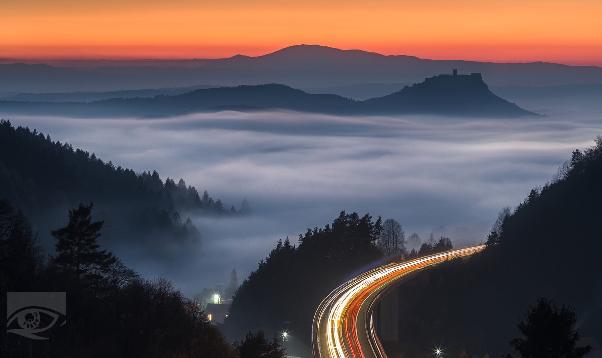 "The view from Branisko Hill provides a unique vista of the busy highway, Spiš Castle, the dominant feature of Spiš, and in the background another dominant feature of Slovakia, the King's Hill, which is shrouded in songs and legends. Last year's autumn was rather poor for autumn fogs and so I was glad that after work I had the opportunity to "run out" to take pictures of Spiš Castle. When I started from Spišská Nová Ves, it was clear from the ground fog in the surroundings that the castle would not be visible and so I thought to go to higher ground, towards Branisko hill along the old road, to see if the castle would appear above the fog. The photo was taken after sunset at the beginning of the blue hour," Ilkovič, who has been taking photographs for 12 years, describes the shot he captured. "Photography is a hobby for me, a leisure time relaxation that I can combine with time spent in nature and capturing the beauty of our landscape, psychohygiene," concludes the winner.