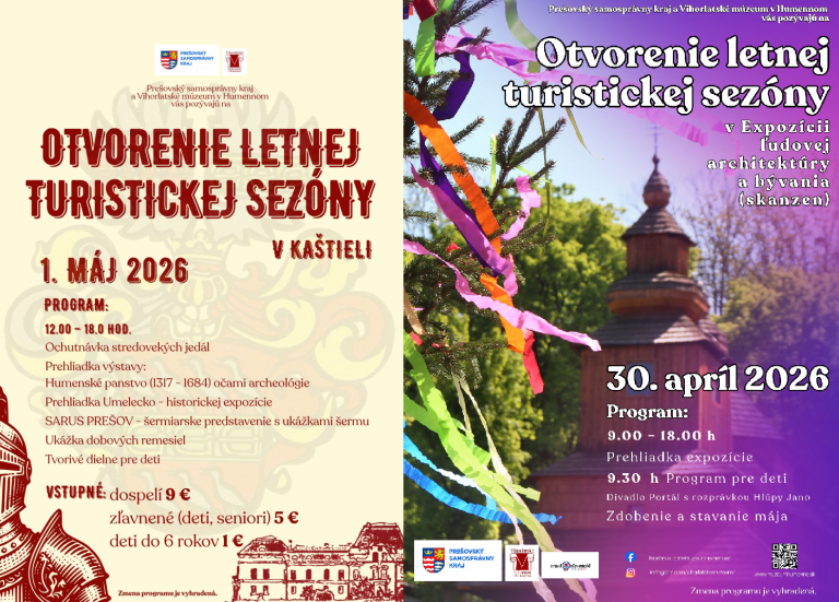 Vihorlatské múzeum v Humennom pozýva na otvorenie svojej sezóny 30. apríla, najprv do skanzenu a neskôr 1. mája na samotné nádvorie Manor House, ktoré sa premení na stredoveké trhovisko s ochutnávkou dobovej kuchyne i s ukážkami remesiel a historickým šarmom.