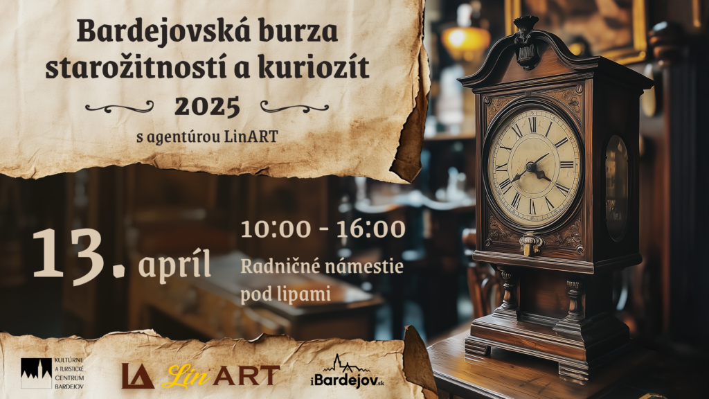 Kultúrne a turistické centrum Bardejov vás pozýva už túto nedeľu 13.4.2025 na Burzu starožitnosti, ktorá sa uskutoční na Radničnom námestí od 10.00-16.00 hod.