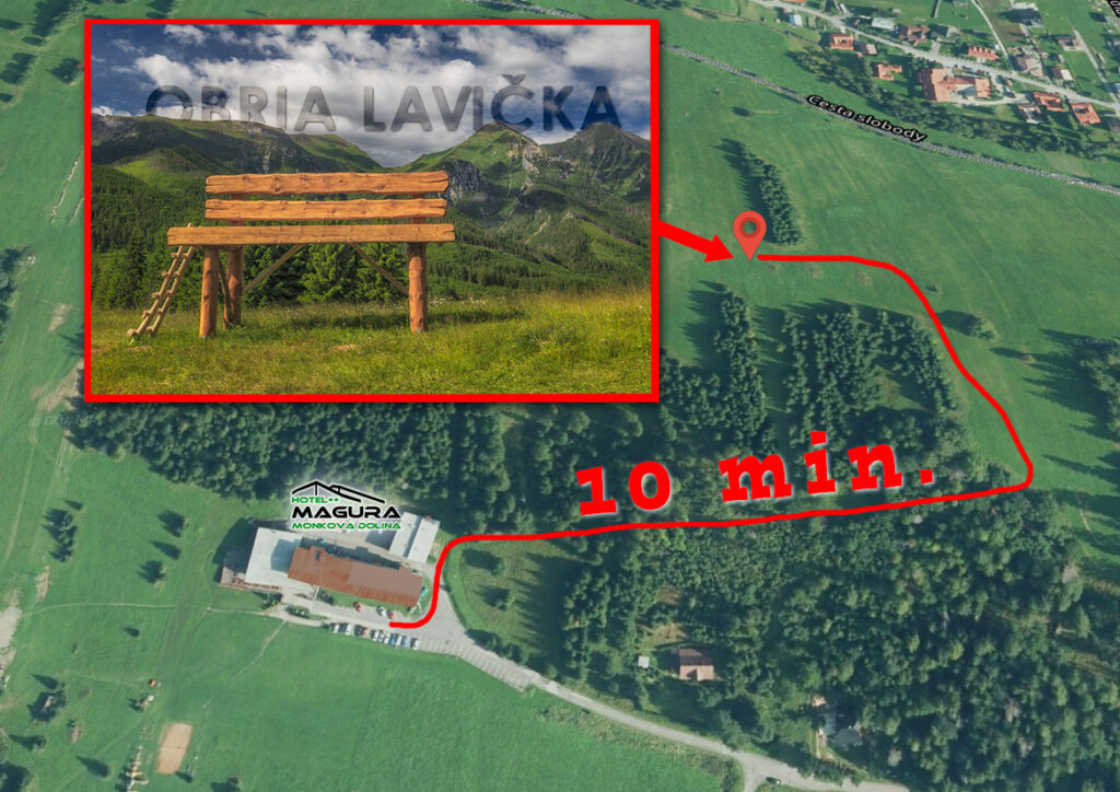 Výstup k lavičke je nenáročný a trvá približne 15 – 20 minút v závislosti od miesta začiatku trasy. Trasu je možné začať pri Hoteli Magura v Monkovej doline alebo z hlavnej cesty v Ždiari (napríklad zo smeru na Strednicu). Vedie po lúke a chodníčku a je vhodná aj pre rodiny s deťmi, seniorov či návštevníkov so psíkmi. Vďaka ľahkej dostupnosti je ideálnou zastávkou na krátku vychádzku.