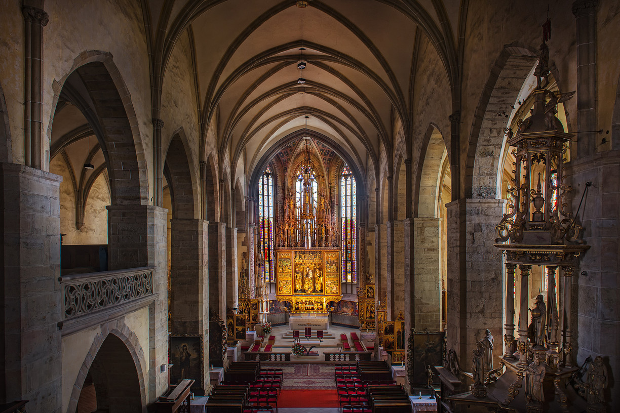 Neskorogotický wooden main altar of St. James is with the height 18,62 m najvyšším svojho druhu na svete. Oltár zhotovili z lipového dreva v rokoch 1507 až 1517 v dielni Master Paul of Levoča, ktorý dal údajne svoju vlastnú podobizeň jednej z dvanástich sôch apoštolov na nádhernej kompozícii Poslednej večere v predele oltára.