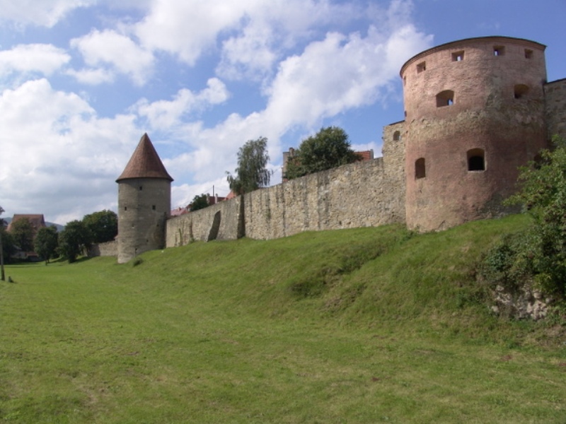 Red (Royal) Bastion is a three-storey bastion with a semicircular ground plan decorated with red squaring. It is open on the side away from the town. It strengthened the defence of the Lower Gate. Under the upper cornice, on the outer shell, the remains of the coat of arms of the town and the coat of arms of Hungary are preserved, which were painted in 1597 by the then richtár Leonard Glatz.
