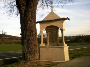 A templomtól délre található a Vilecz család 1842-1843-as sírköve, amely a falu utolsó birtokosainak állít emléket.