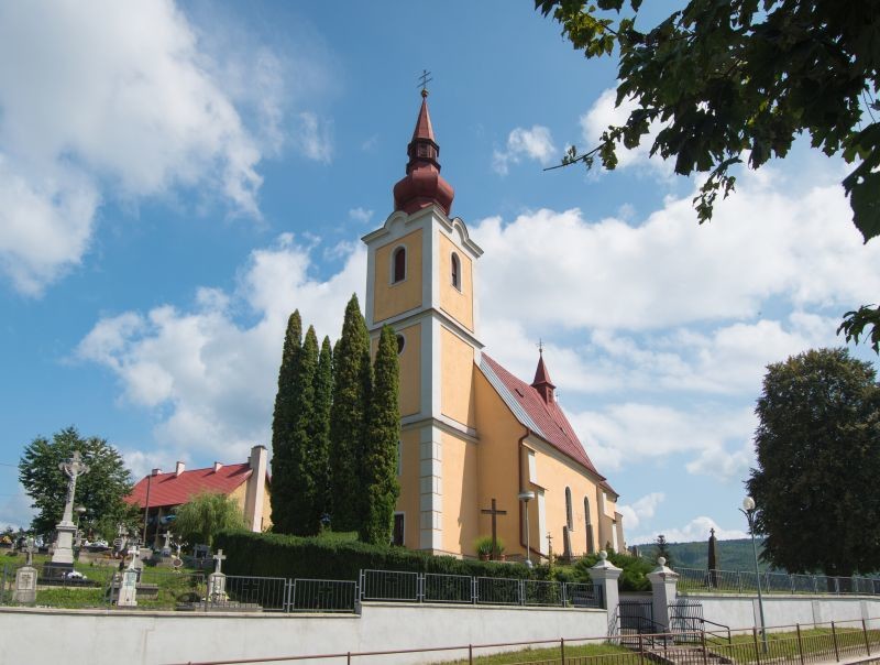 A hajónak lapos mennyezete van. A templom nyugati oldalán négy oszlopon álló kórus található, egyenes parapettel. A hajó bejáratát éles kőből készült gótikus portál szegélyezi. A torony tetején egy tamburás "hagyma" és egy kétkarú kereszttel ellátott torony van. A torony belsejében egy pár harangakiket Jurajnak és Annának hívnak. Ők a Octave Winter műhelyéből és 1920-ban gyártották. A nyeregtetőt és a kis tornyot bádoggal fedték. Egy 2006. augusztusi vihar során egy erős széllökés során megsérült.