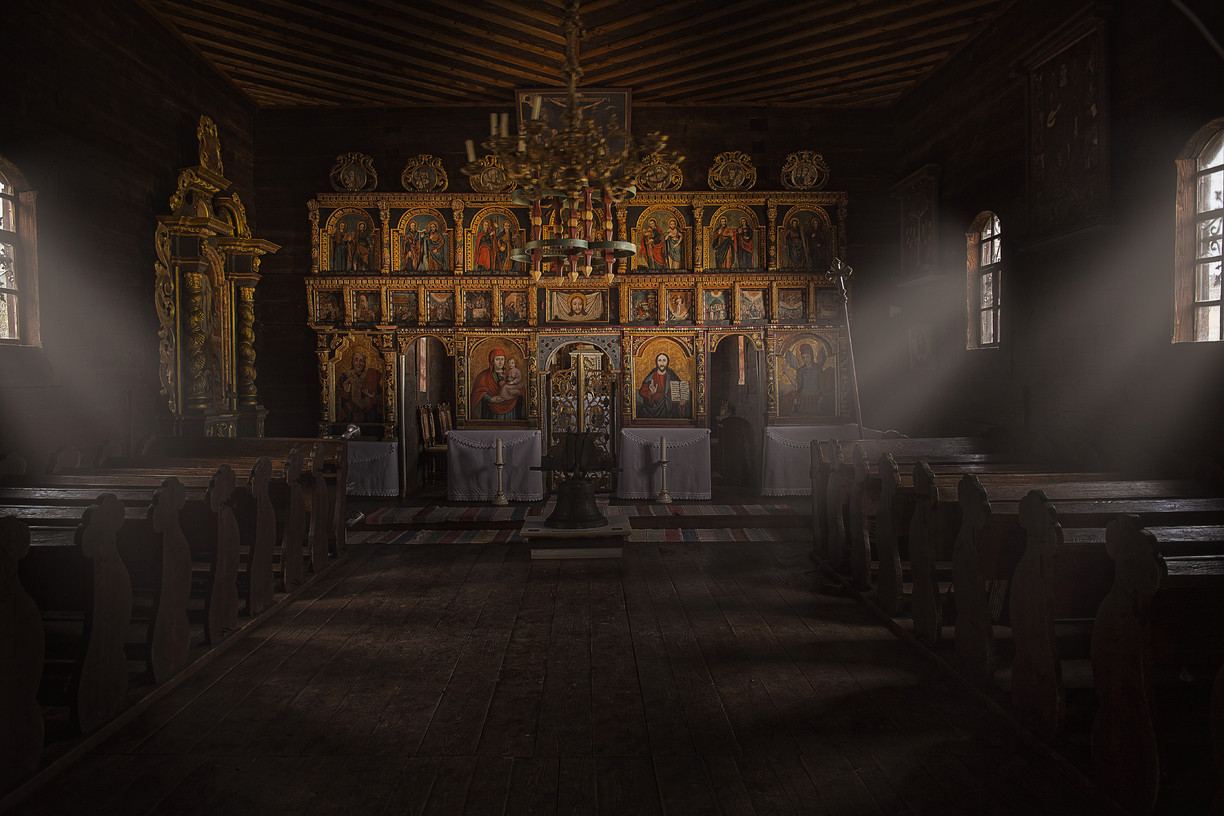 Interiér kostolíka je ozdobený ikonostasom, ktorý je z polovice 18. storočia a pochádza zo staršieho a menšieho chrámu. Niektoré ikony (sv. Peter a Pavol, sv. Michal, Kristus Pabtokrátor) sú zo 17. storočia. V oltárnej časti sa nachádza aj vzácny obraz Bohorodičky datovaný z roku 1693.