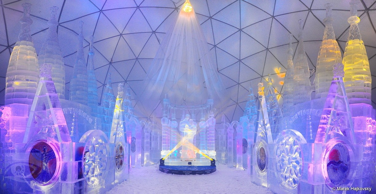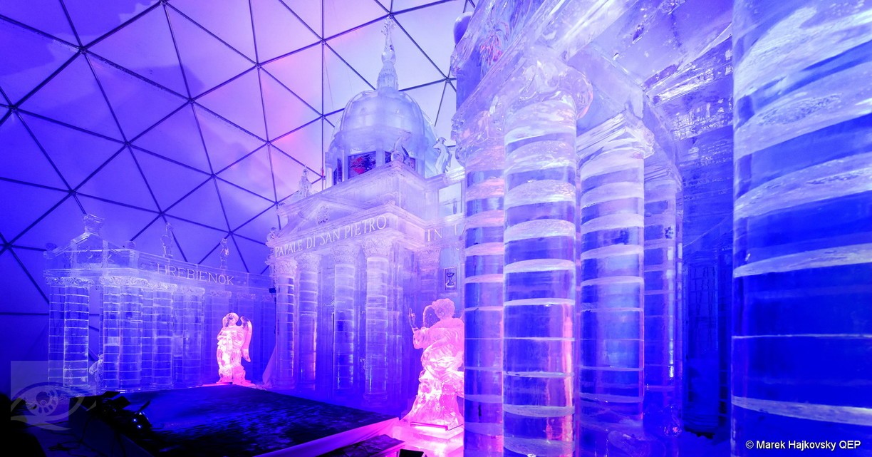 A tátrai jégkupola fő építője hagyományosan Adam Bakoš volt, akinek irányítása alatt szlovákiai, csehországi, lengyelországi és németországi faragók dolgoztak. A kupolába lépve az első kép az apátság nyugati oldalát, a középső rész pedig a világhírű épület északi oldalát mutatja. A jégszerkezetet egy jégből készült koronázási szék egészíti ki, amely stílusos fotópontként szolgál. A kupola bejárata előtt a látogatók a II. Erzsébet Magas-Tátrában tett látogatását megörökítő fotókiállítást találnak.