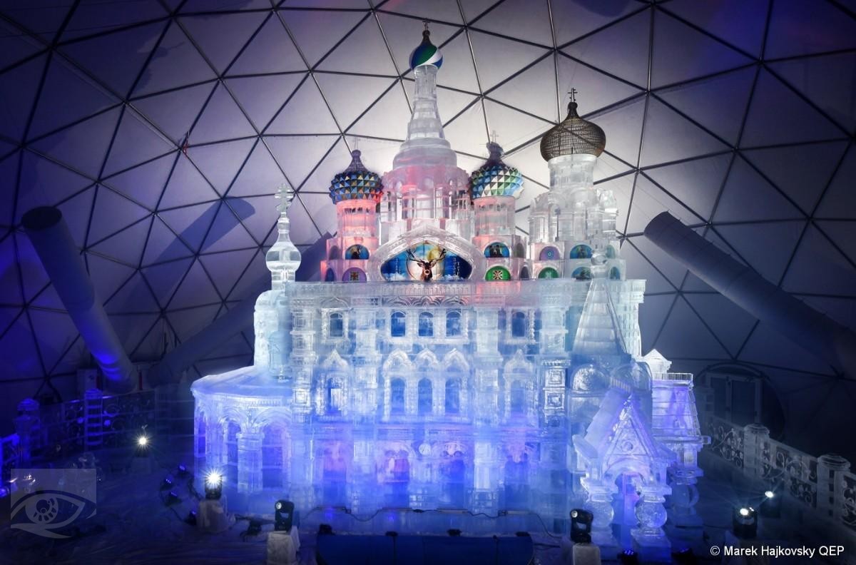 Vysoké Tatry, 2023. november 16. A Magas-Tátra legnépszerűbb téli látványossága, a tátrai jégkupola 11. alkalommal nyitja meg kapuit. A világ különböző részeinek építészete által ihletett jégépítmények után idén a jégkupola egy ritka személyiség ihlette, brit vonatkozású jégkupola.
