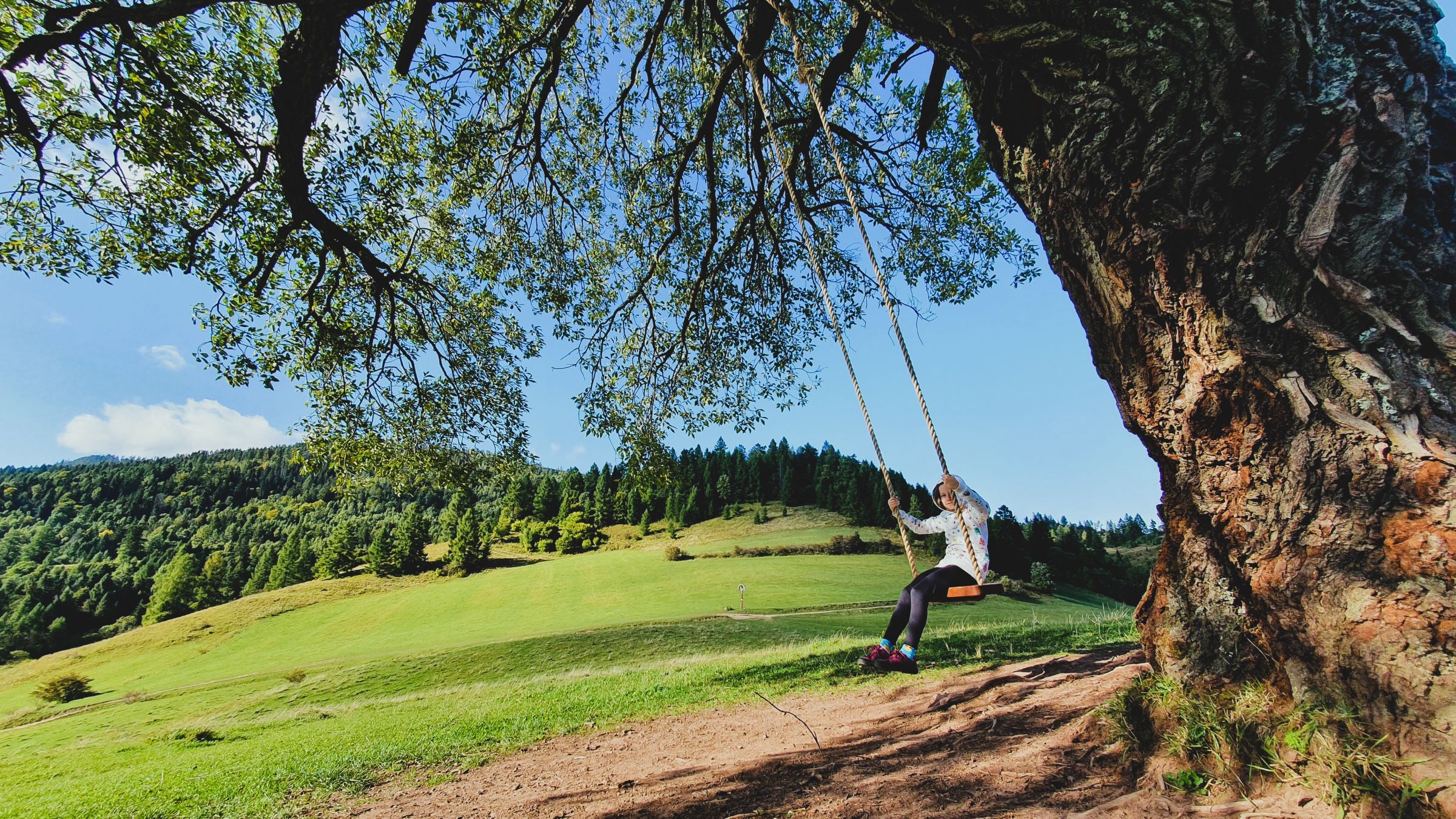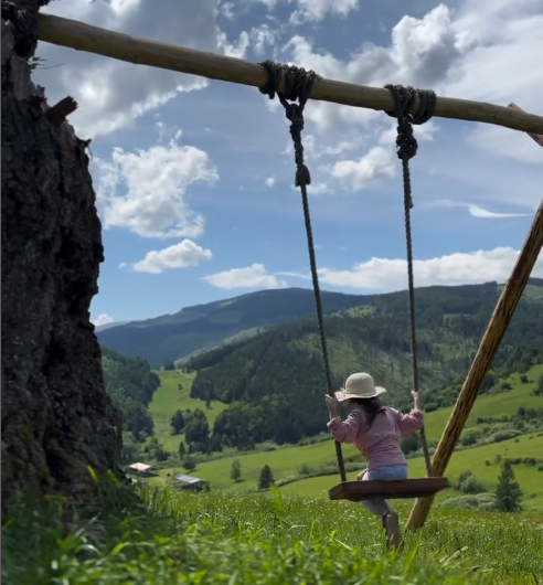 Hojdačka na vŕšku nad hotelom Studničky ponúka úchvatný výhľad na Kráľovu hoľu.