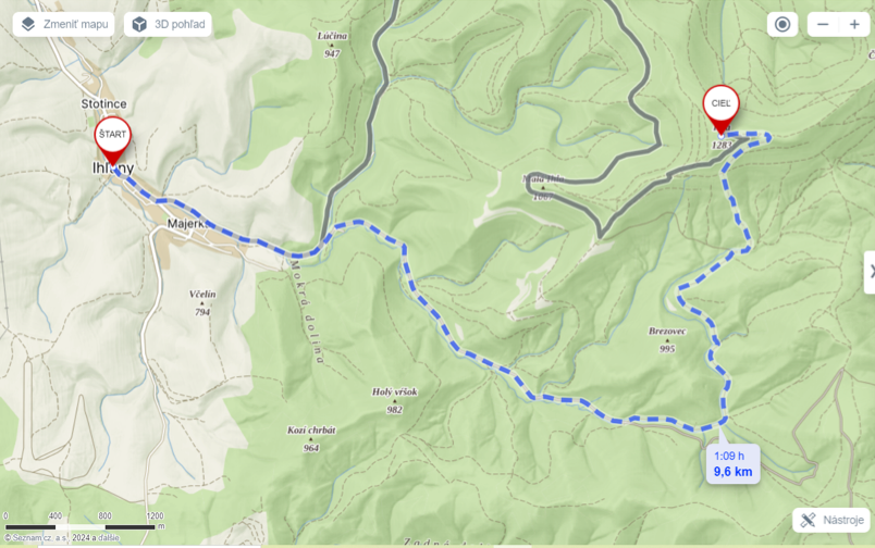 • z lokality „Malý Václavák“, odtiaľ pešo po červenej turistickej značke 1,35 h