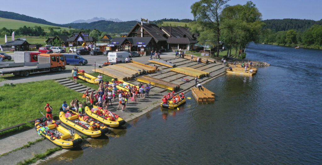 Využite možnosť splaviť sa raftom aj bez akýchkoľvek skúsenosti. Školení inštruktori sa radi postarajú o vašu bezpečnosť a zážitky na vode. Splav je vhodný pre rodiny s deťmi, školské výlety, partie ľudí ale aj pre pári či firemné akcie a teambuldingy. Nechajte sa taktiež unášať na vlnách Dunajca s pltníkmi a zažijte neopakovateľné chvíle na historických drevených pltiach, splavovaním najväčšieho skalnatého prielomu strednej Európy naprieč Pieninským Národným Parkom. Hlavný prístav pltí sa nachádza v obci Červený Kláštor 93, ktorý a je súčasťou areálu.