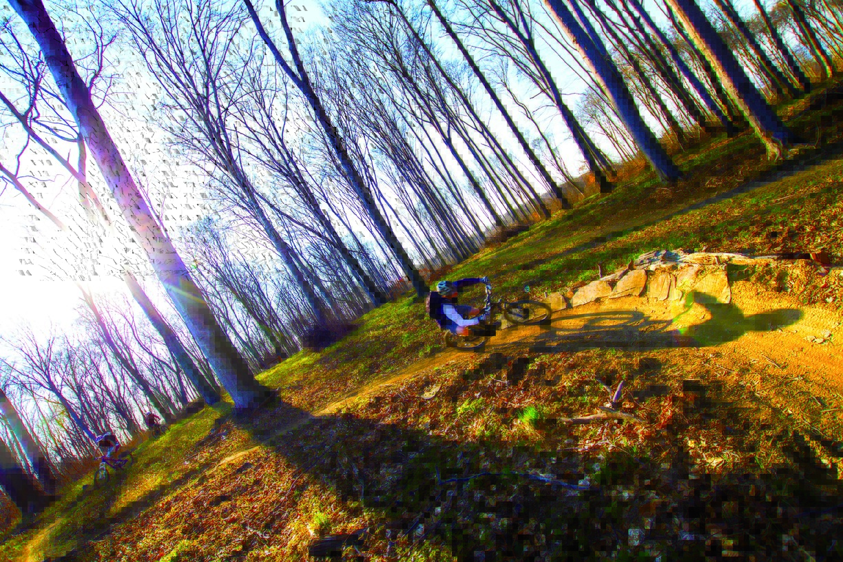 Jumptrail len pre skúsených jazdcov. Niektoré skoky cez prekážky nie je možné obísť. Vysoká rýchlosť.