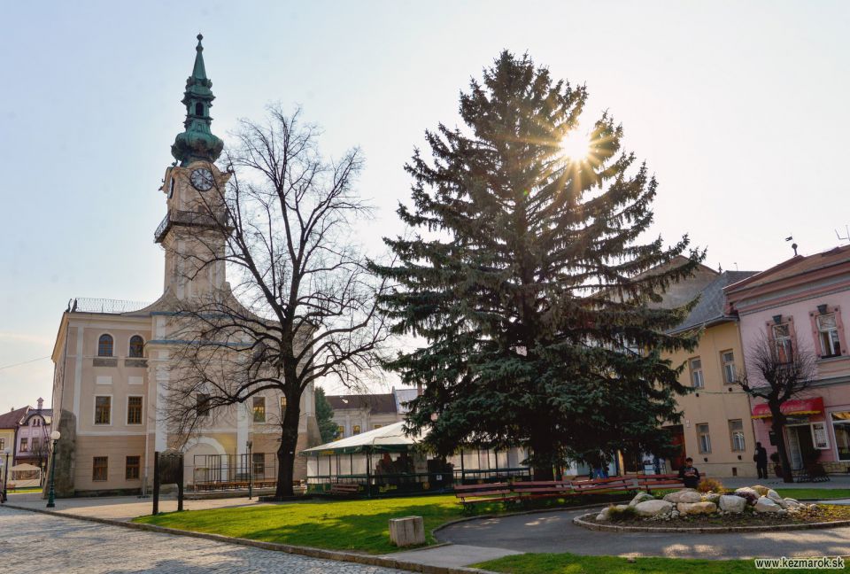 Prvá kežmarská radnica stála na jednej z najstarších kežmarských ulíc – na Starom trhu. Po vpáde husitov r. 1433 mesto čiastočne vyhorelo a centrum sa presunulo do jeho inej časti, kde sa vytvorilo nové námestie. V jeho strede postavil r . 1461 Juraj zo Spišskej Soboty novú gotickú radnicu. Dodnes sa z tejto stavby zachoval zvyšok trojokna na južnej strane radnice. Po veľkom požiari bola radnica v r. 1541 – 1555 prestavaná majstrom Kuntzom z Kežmarku do renesančnej podoby, o čom svedčí na západnej fasáde kamenný mestský znak s letopočtom 1555, časti okenných portálov a na južnom prízemí zbarokizovaný, pôvodne renesančný portál s mestským erbom. R. 1641 za richtára Žigmunda Moesa sa k radnici pristavala veža. V r. 1779 radnica znova vyhorela a prestavala sa v klasicistickom slohu. Dnešný výzor a nadstavbu druhého poschodia nadobudla po poslednom veľkom požiari r. 1922. Pod radnicou je stará pivnica, v ktorej v 16. stor. vyvierali pramene vody. Podľa tradície vedie z pivnice únikový podzemná chodba. V súčasnosti je radnica sídlom mestského úradu. Zdroj: www.kezmarok.net.