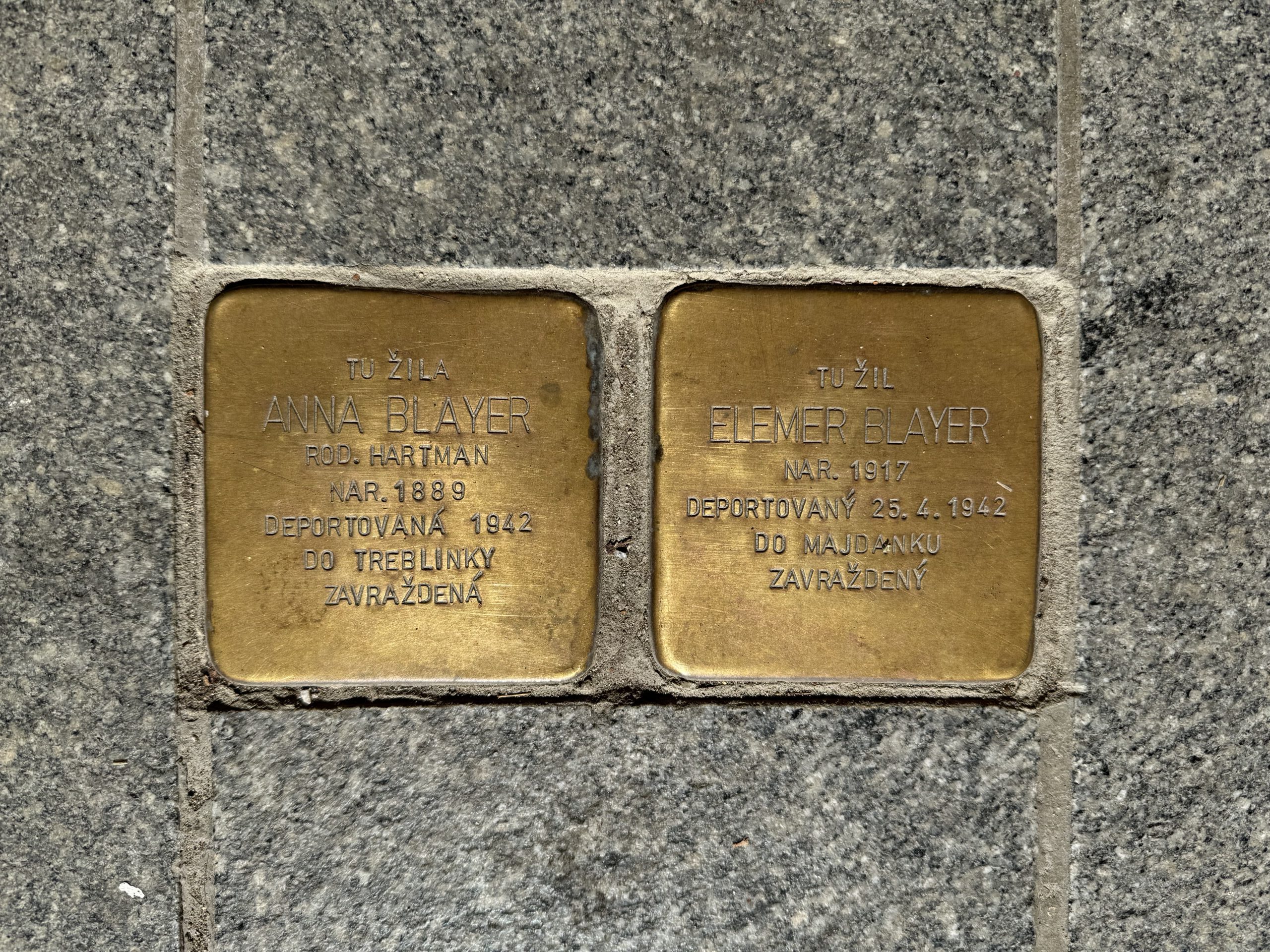 V rámci Starej Ľubovne boli osadené dve takéto mosadzné kocky na Námestí sv. Mikuláša, a to nie náhodou. Venované sú významnej rodine Blayerovcov. Tí boli v medzivojnovom období vlastníkmi Provinčného domu, bývalého sídla Okresného úradu a v súčasnosti mestskej galérie. Pamätné kocky nesú mená Anny Blayerovej a jej syna Elemera Blayera, ktorí zahynuli v koncentračnom tábore. Občianske združenie UM UM, o. z. pripravilo informačný leták so zvukovou mapou, ktorá ponúka audiowalk – zvukovú prechádzku spájajúcu šesť miest v Starej Ľubovni súvisiacich s históriou Židov. Autorské hudobné kompozície a audiokomentáre vytvorili lokálni aj medzinárodní umelci počas festivalu UM UM 2018.