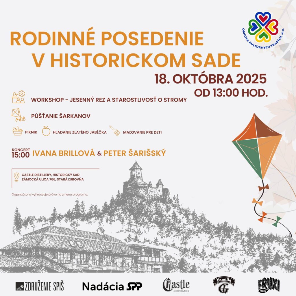 Workshop na tému jesenný rez a starostlivosť o stromy. Púšťanie šarkanov a koncert Ivany Brillovej a Petra Šarišského v nádhernom prostredí podhradia v Starej Ľubovni.