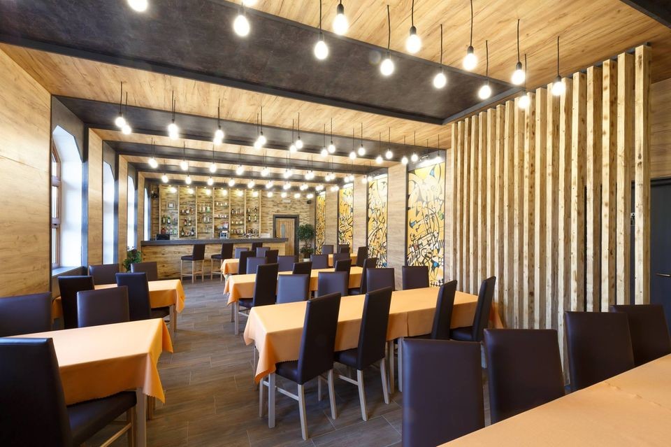 Zariadenie sa nachádza v komplexe gastro-centra, ktoré zahŕňa lahôdky, rýchle občerstvenie a vývarovňu, reštauráciu, záhradnú reštauráciu, bar, miestnosti na konanie rozličných spoločenských udalostí (svadby,krstiny, prezentácie, pracovné posedenia, školenia).