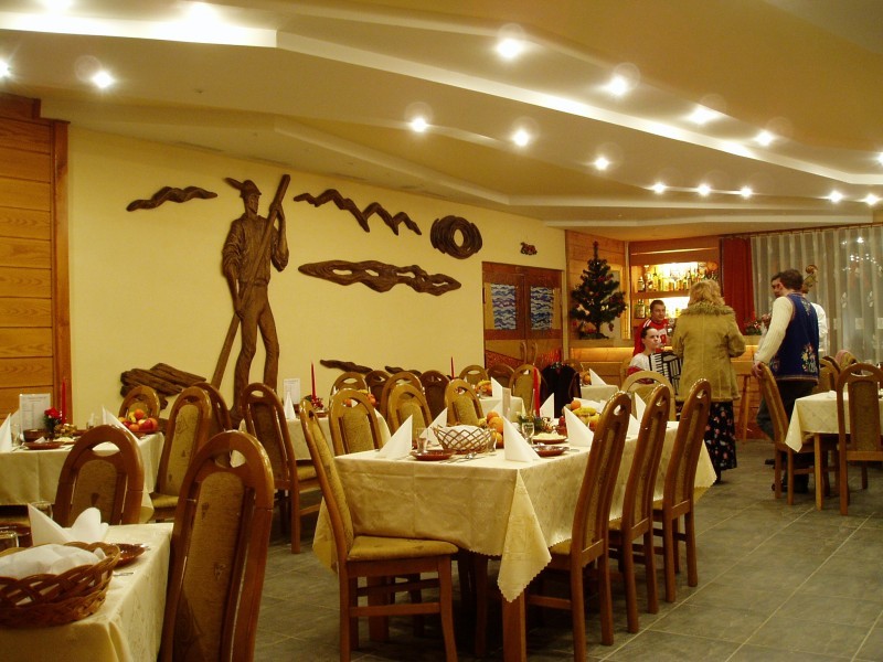 Goralskú atmosféru zažijete po vstupe do koliby a do reštaurácie s krbom a barom.