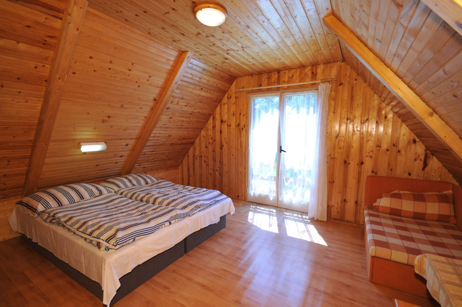 Zakwaterowanie odbywa się w chatach turystycznych, typ bungalowów. Każdy domek posiada 3 oddzielne zamykane pokoje (1/2 + dostawka, 1/2 + dostawka, 1/1 + dostawka), łazienka. Wyposażenie, prysznic i ciepła woda, lodówka. W przypadku pobytów rodzinnych możliwe jest wynajęcie całego domku, z możliwością rozbicia namiotu w domku i korzystania z łazienki. udogodnienia w domku i plac zabaw.