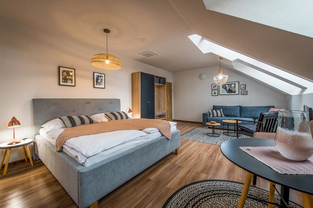 V ponuke okrem reštaurácie aj 5 apartmánov, každý zariadený v unikátnom štýle, s dôrazom na minimalistický dizajn a útlnosť –ako stvorené pre náročných klientov s vyberaným citom pre dizajn a umenie.