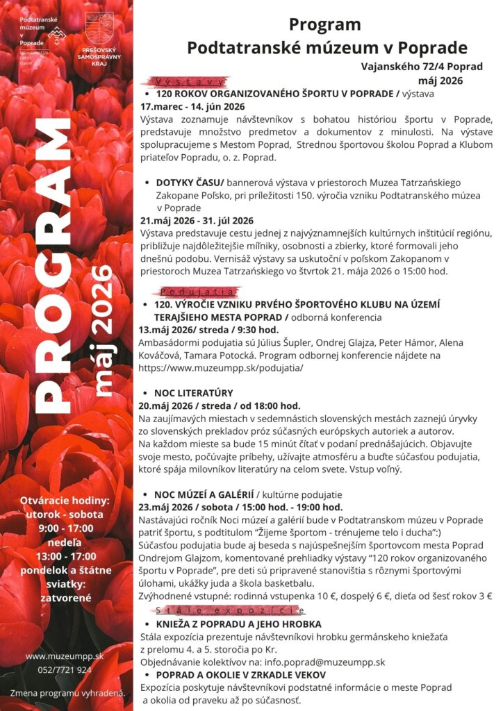 Dávame do pozornosti program Podtatranského múzea v Poprade na mesiac máj 2026.