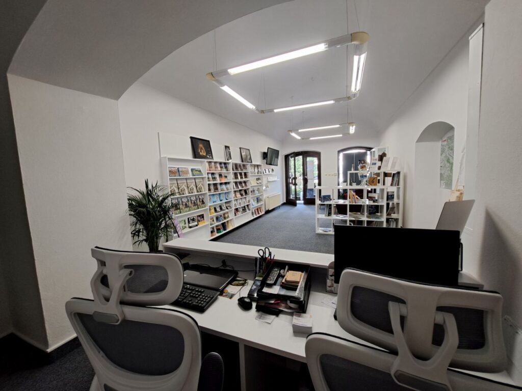 Zabezpečuje tiež predaj máp a pohľadníc, publikácii o meste Prešov, regióne a Slovensku, suvenírov a darčekových predmetov i vstupeniek na Objavovanie Prešova.